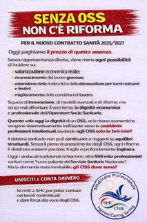 Senza questo passaggio, ogni rivendicazione resterà solo uno slogan, e ogni riforma continuerà a esistere solo sulla carta o nelle dichiarazioni di altri. La sanità ha bisogno di verità, equità e coraggio politico. E senza gli oss, non esiste alcuna vera riforma possibile.